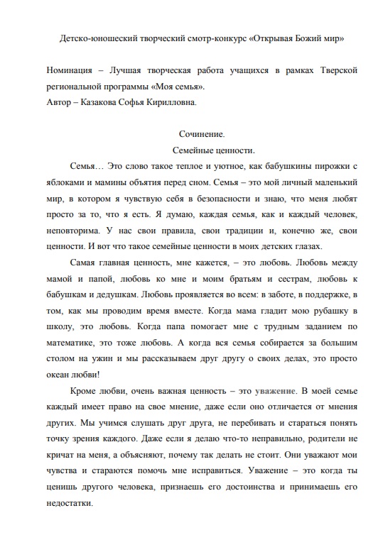 Казакова СофьяСочинение «Семейные ценности»