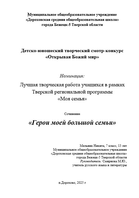 Мельник НикитаСочинение «Герои моей большой семьи»