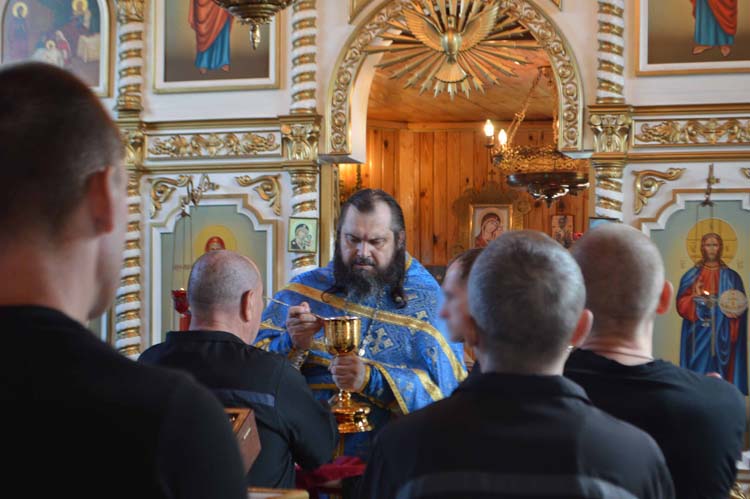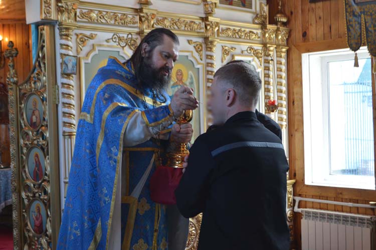 Осужденные исповедовались и причастились Святых Христовых Таин. По окончании богослужения отец Алексий обратился к осужденным со словом проповеди и рассказал об истории Большого Бежецкого Крестного хода и о его святынях.