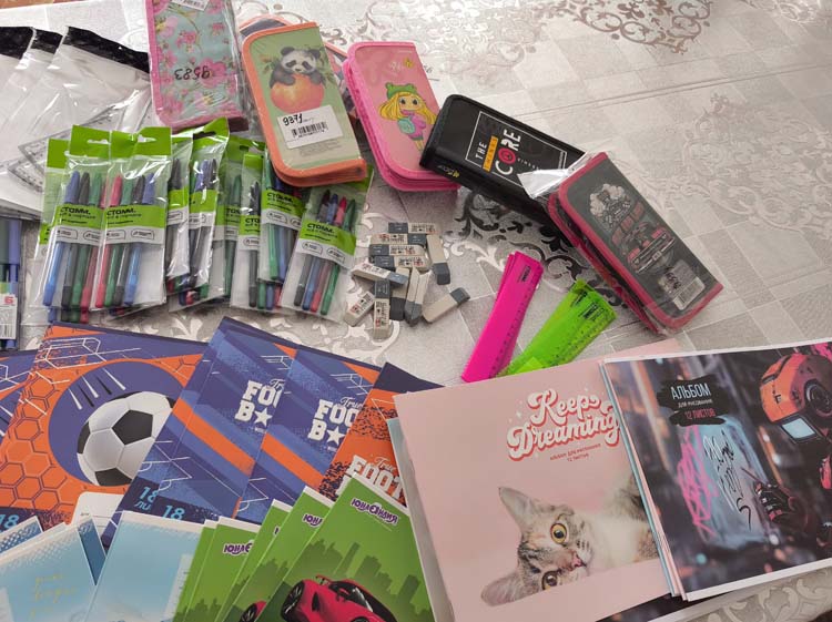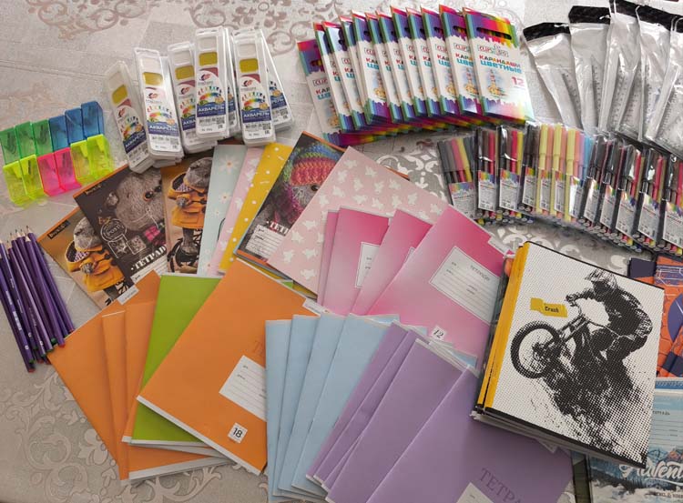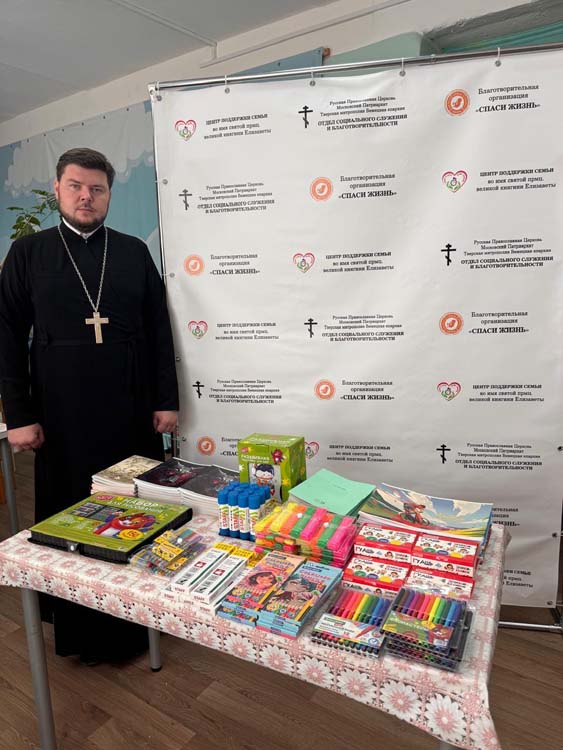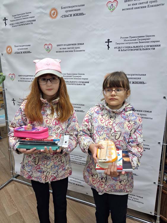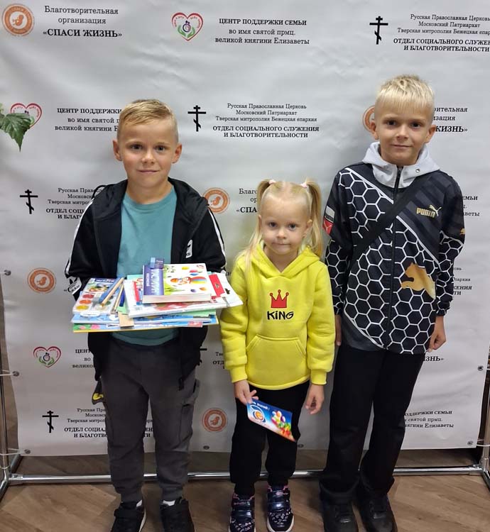 Благодаря усилиям прихожан и жителей муниципалитетов были приобретены портфели и канцелярские товары: тетради, альбомы, цветные и простые карандаши, фломастеры, краски, ручки и др. В начале сентября клирики Бежецкой епархии вручили школьные принадлежности ребятам.