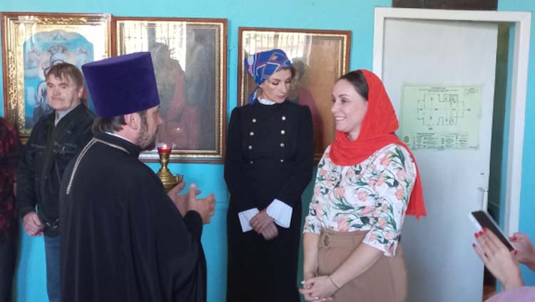 Затем депутат посетила Всехсвятский храм. Благочинный Максатихинского округа, настоятель храма протоиерей Виталий Мартынюк провел для Юлии Владимировны экскурсию по храму, рассказал об его истории исвятынях. Ю. В. Саранова приложилась к иконам, осмотрела здание Воскресной школы и территорию храма Всех Святых.