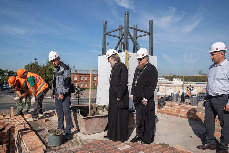 После окончания молебна глава Тверской митрополии митрополит Тверской и Кашинский Амвросий, архиепископ Бежецкий и Удомельский Каллистрат и епископ Ржевский и Торопецкий Силуан приняли участие в закладке второго яруса колокольни Спасо-Преображенского кафедрального собора г. Твери.
