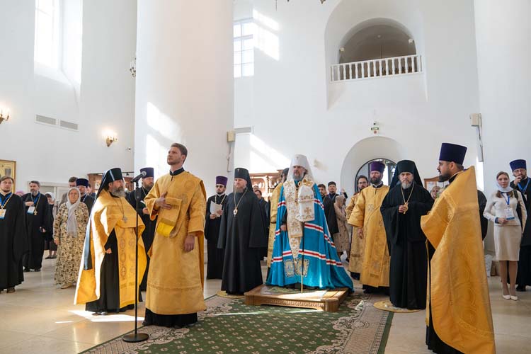 В Спасо-Преображенском кафедральном соборе собрались делегаты разных регионов ЦФО и победители конкурса «За нравственный подвиг учителя» для того, чтобы начать чтения с общей молитвы. Молебен на начало доброго дела возглавил митрополит Тверской и Кашинский Амвросий. За богослужением также молились архиепископ Бежецкий и Удомельский Каллистрат, епископ Ржевский и Торопецкий Силуан.