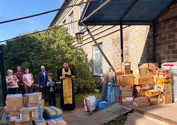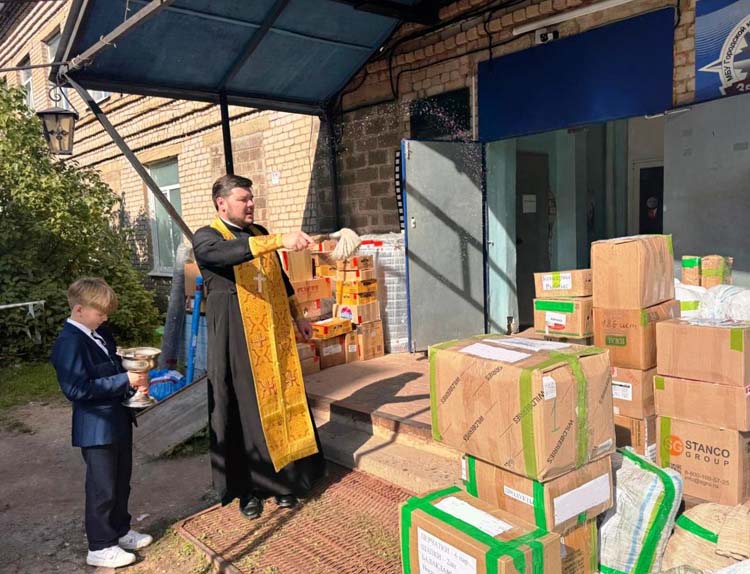 Перед отправкой руководитель Отдела социального служения и благотворительности Бежецкой епархии, настоятель Князь-Владимирского кафедрального храма иерей Петр Губанов освятил гуманитарный груз.
