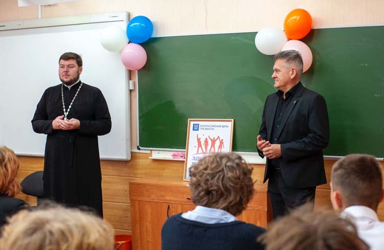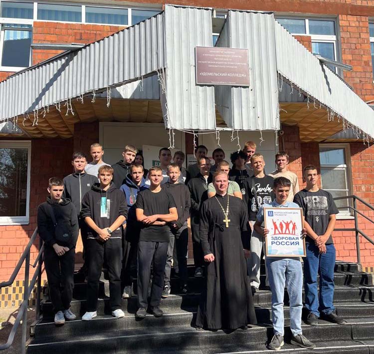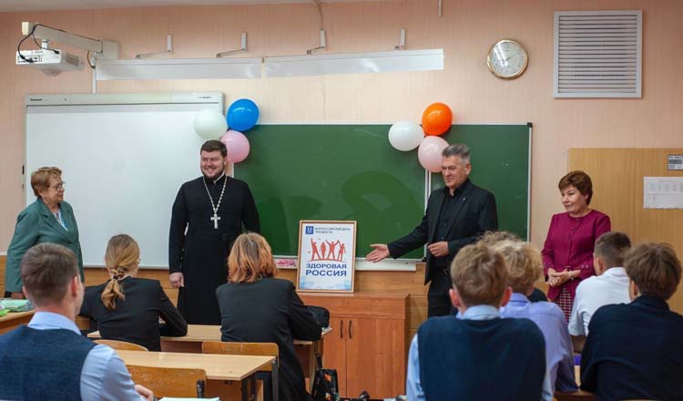 Затем отец Петр и Рем Аркадиевич посетили собрание участников Общероссийского общественно-государственного движения детей и молодежи «Движение первых», где также провели беседу о вреде алкоголя.