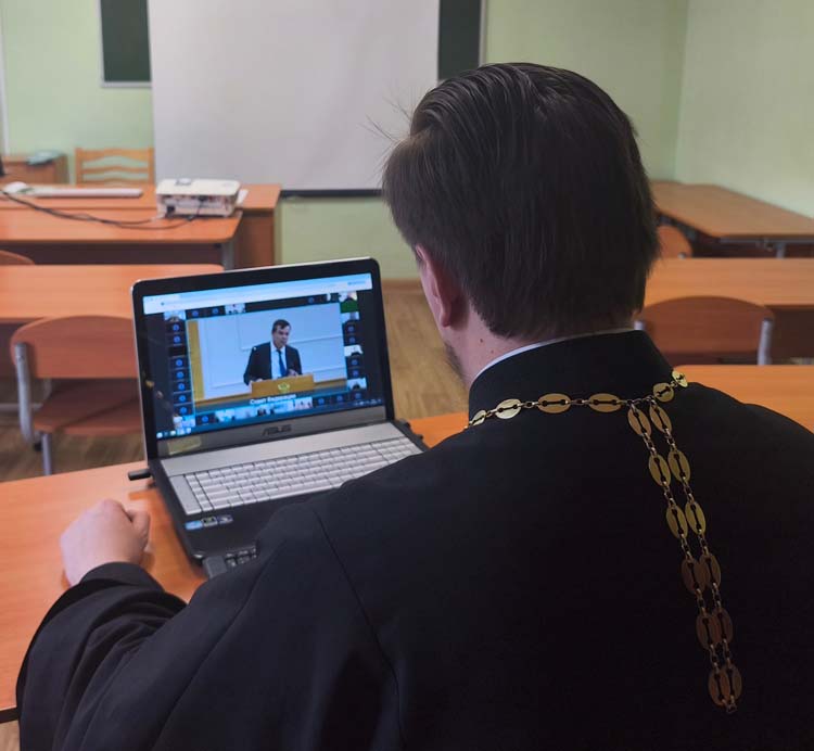 По благословению Преосвященного Каллистрата, архиепископа Бежецкого и Удомельского, участие в совещании в режиме видеоконференции принял сотрудник Епархиального управления Бежецкой епархии, настоятель Свято-Николаевского архиерейского подворья д. Слобода иеромонах Арсений (Салов).