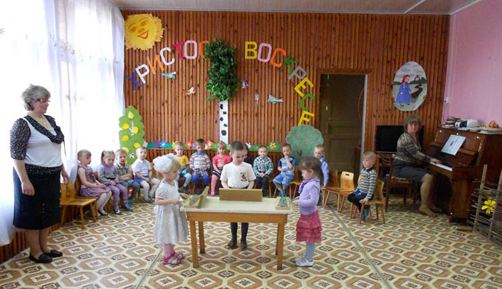13 мая в детском саду № 4 г. Весьегонска, по уже сложившейся традиции, состоялся Пасхальный утренник. Дети читали стихи, пели песни о Воскресении Иисуса Христа, водили хороводы, проводили пасхальные игры.