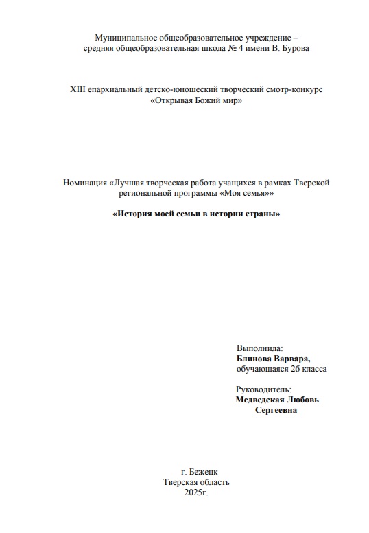 Блинова Варвара«История моей семьи в истории страны»