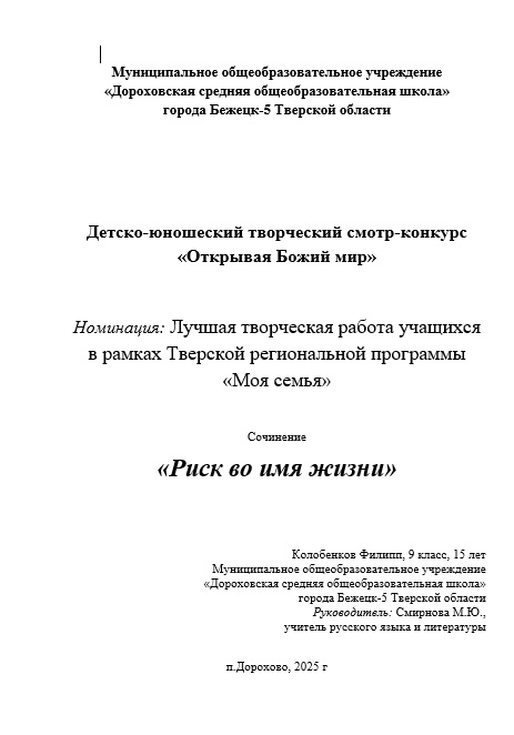 Колобенков ФилиппСочинение «Риск во имя жизни»