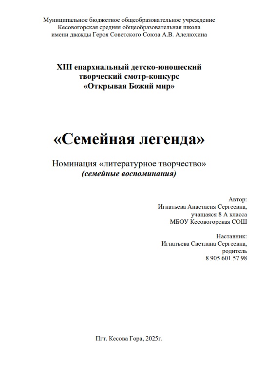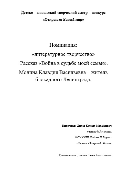 Дылёв Кирилл Рассказ «Война в судьбе моей семьи»