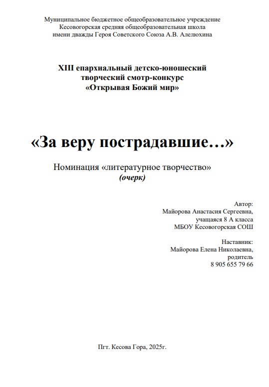 Майорова Анастасия Очерк «За веру пострадавшие»