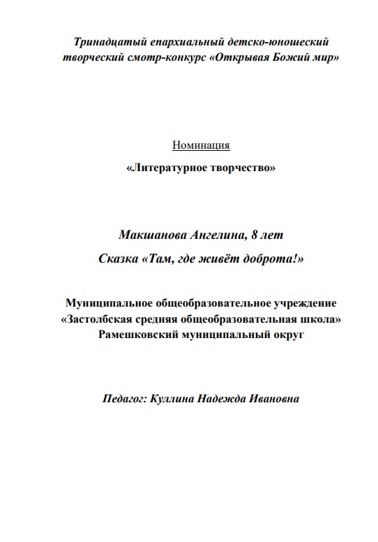 Макшанова Ангелина Сказка «Там, где живет доброта!»