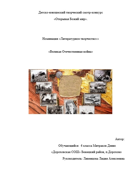 Митраков Денис Стихотворение «Великая Отечественная война»