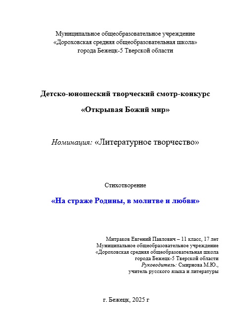 Митраков Евгений Стихотворение «На страже Родины, в молитве и любви»