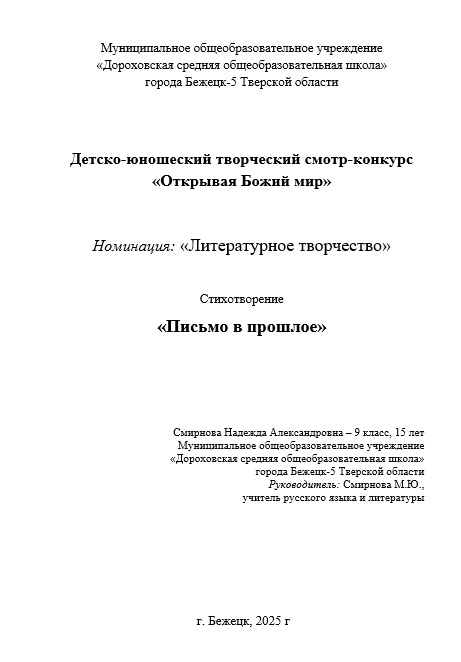 Смирнова Надежда Стихотворение «Письмо в прошлое»