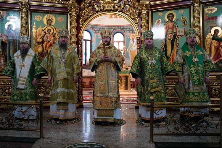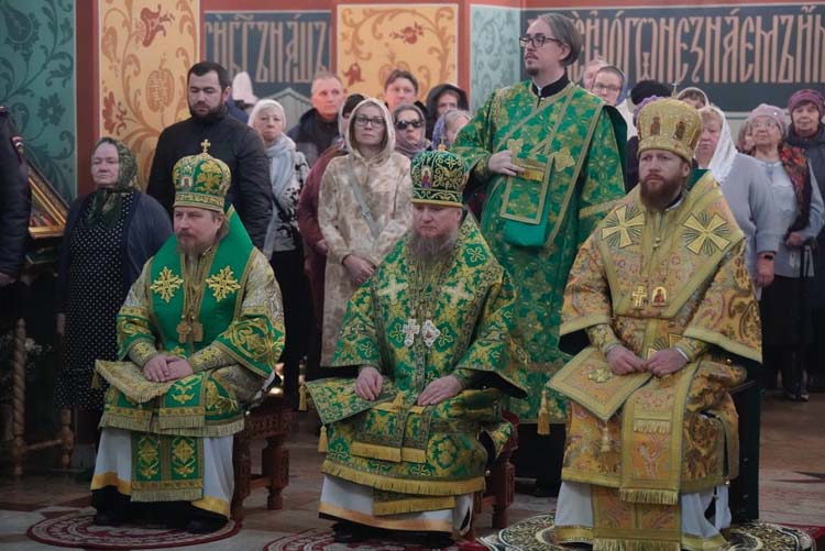 Совершение Божественной литургии возглавил митрополит Вологодский и Кирилловский Савва. Его Высокопреосвященству сослужили: архиепископ Бежецкий и Удомельский Каллистрат, епископ Великоустюжский и Тотемский Фотий, епископ Североморский и Умбский Тарасий, епископ Череповецкий и Белозерский Игнатий; секретарь Череповецкой епархии, почётный настоятель кафедрального собора города Череповца митрофорный протоиерей Александр Куликов; заведующий канцелярией епархиального управления, настоятель кафедрального собора преподобных Афанасия и Феодосия Череповецких иерей Сергий Бондарь; благочинный Устюженского округа, настоятель Казанского храма г.Устюжны протоиерей Константин Лобанов; настоятель храмового комплекса святителя Николая Чудотворца г.Череповца протоиерей Владимир Беляев; настоятель храма Рождества Христова г.Череповца протоиерей Сергий Сергеев; руководитель отдела по работе с молодёжью Череповецкой епархии, настоятель храма преподобного Сергия Радонежского г.Череповца иерей Роман Зайцев; духовник Череповецкой епархии, клирик храма Рождества Христова г.Череповца протоиерей Олег Кочубей; руководитель отдела по социальному служению и благотворительности Череповецкой епархии, ключарь Архиерейского подворья Воскресенского собора г.Череповца иеромонах Нил (Хоменец); руководитель отдела по работе с молодёжью Вологодской епархии иерей Михаил Максимов; насельник Спасо-Прилуцкого монастыря иеромонах Илларион (Свиридов); священнослужители Вологодской, Великоустюжской и Череповецкой епархий.