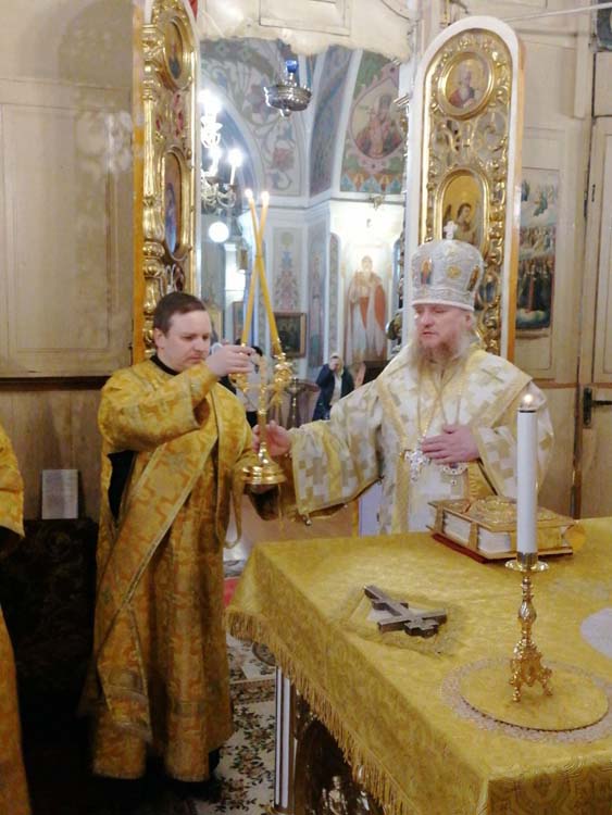 Накануне в Спасском кафедральном соборе было отслужено Всенощное бдение.