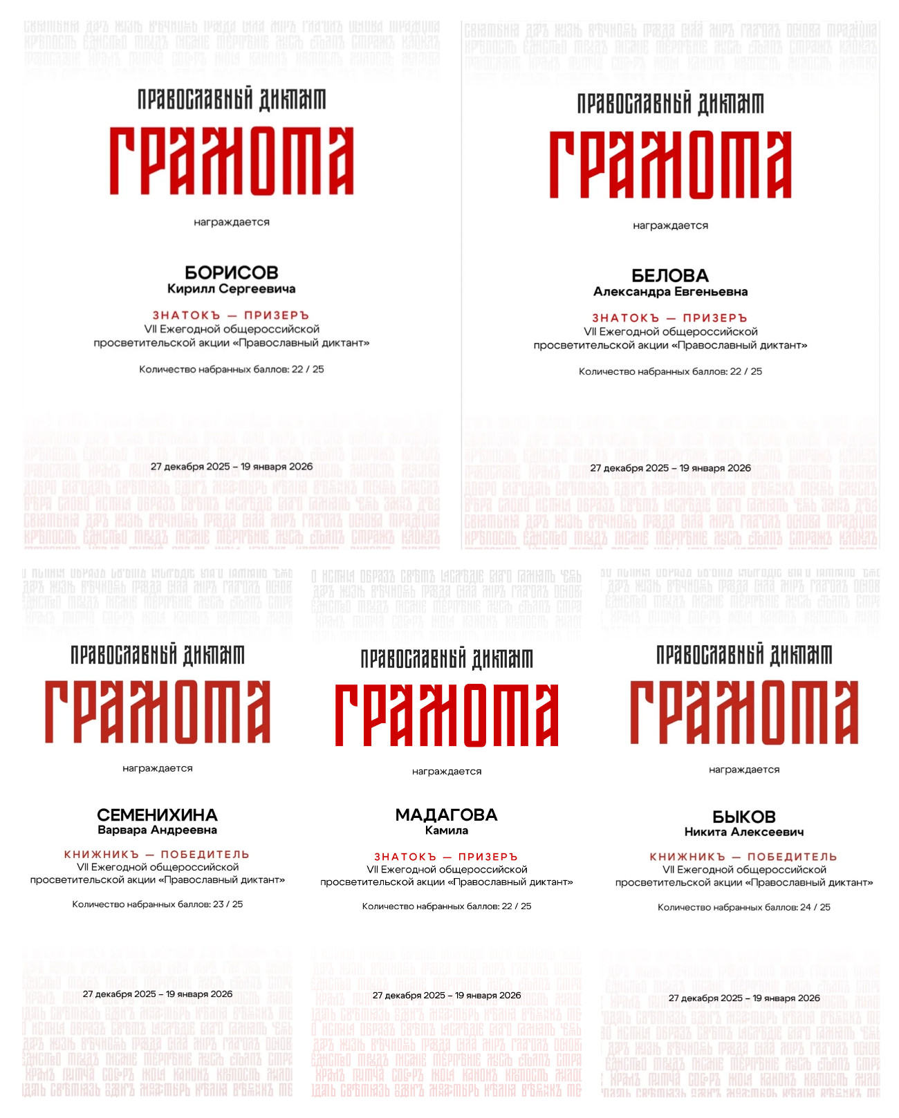 С 14 по 16 января студенты: Бежецкого промышленно-экономического колледжа, Бежецкого медицинского колледжа, Бежецкого педагогического колледжа им. А.М. Переслегина, а также учащиеся Дороховской СОШ города Бежецка-№5, приняли участие в ежегодной VII всероссийской просветительской акции «ПРАВОСЛАВНЫЙ ДИКТАНТ» проходимый с 27 декабря 2025 года по 19 января 2026 года.