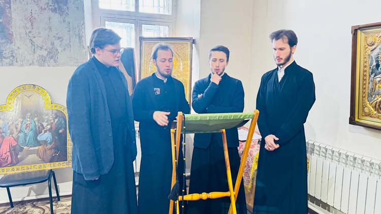 Во время праздничной трапезы воспитанники МДА порадовали прихожан и гостей храма духовными песнопениями.
