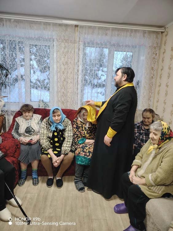 Отец Михаил отслужил молебен, затем насельники учреждения исповедовались и причастились Святых Христовых Таин. В завершении встречи батюшка обратился к насельникам Дома-интерната со словами назидания.