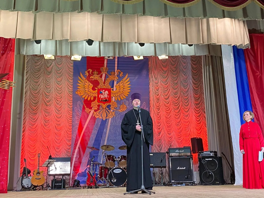 19 февраля в МАУ «Районный Дом народного творчества» г. Бежецк состоялось праздничное мероприятие, посвященное Дню защитника Отечества. По благословению Высокопреосвященнейшего Каллистрата, архиепископа Бежецкого и Удомельского в мероприятии принял участие секретарь Бежецкой епархии протоиерей Ярослав Шведов.